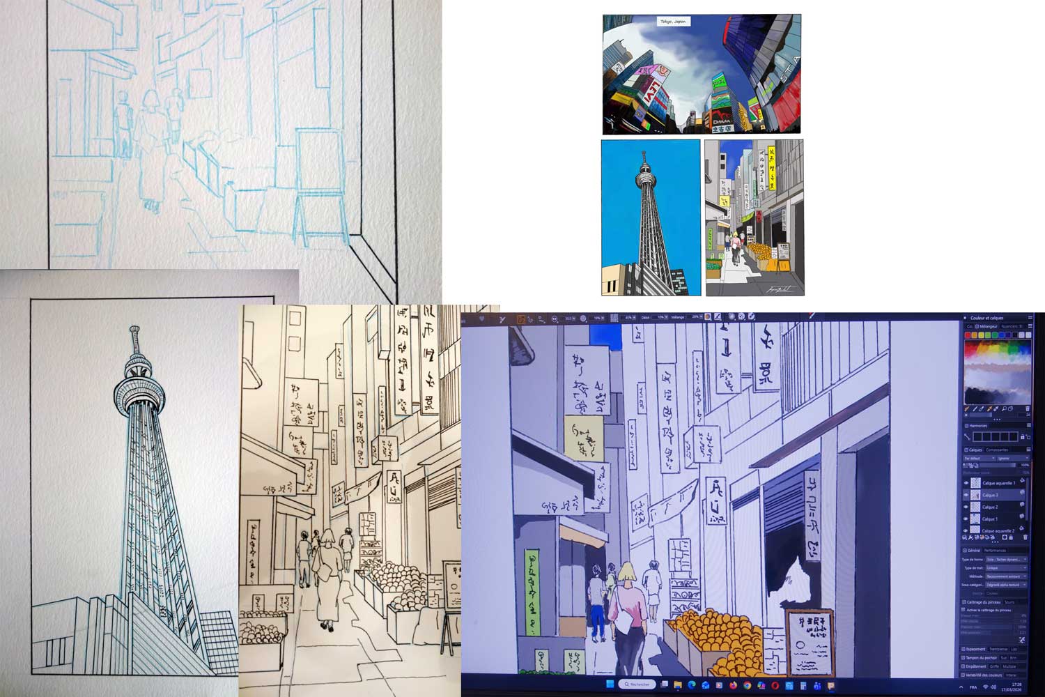 I created this comic strip during my trip to Japan, specifically Tokyo, combining traditional drawing on paper with digital painting on a computer..